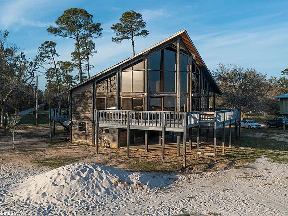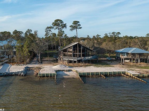 Welcome to Wilson Drive! The opportunity to own 115' of gorgeous waterfront property in one of the most desirable locations on Arnica Bay comes few and far between! This large lot on deep water allows for easy water access to the Gulf, local shops, restaurants, marinas, beaches and more. Lot features a bulkhead shoreline with sandy bottom on close to an acre of land. This lot is waiting for a private pier or you can utilize the public boat launch or Barbers Marina right around the corner. As you enter the home you will be absolutely impressed by the floor to ceiling windows across the back that allows for amazing views of the bay from almost every room. The first floor features an open floor plan with a beautiful hardwood ceiling, a wood burning fire place, kitchen with updated countertops, updated master bedroom and bath, along with a spacious deck that wraps around the back of the home overlooking the encompassing waterfront. As you reach the second floor you will find the second fully updated bath and a generous sized second bedroom with built-in bunks and a private outdoor balcony. A third bedroom around the corner will leave you in awe at the stunning waterfront views that this room lends. Come on down to ground level where there is a third full bath, laundry, plenty of storage and a brand new hot water heater. This home will make the perfect place to enjoy entertaining with family and friends! What more could you want besides the deed?! This extraordinary home is a MUST SEE! Local zoning should allow for construction of an accessory structure. Possible use as a Bed & Breakfast by special exceptions and by applying for approval to the board of adjustments and appeals. THIS PROPERTY IS BEING SOLD AS IS WHERE IS. Property sustained some damage from Hurricane Sally. Listing agent makes no representation to the accuracy of any measurements or zoning information but is believed to be accurate. Buyer/buyers agent to verify any and all information deemed important.