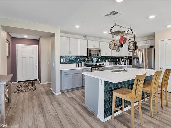 Would you like to live in a more rural setting, just 14 miles from Wine County? How about waking up to see Hot Air Balloons in the distance, rising with the morning sky? Welcome to Winchester. A rural city on the rise, with the conveniences of a big city nearby, such as Menifee and Temecula. This property, newly built in 2020, has a contemporary design with style and functionality. The open concept layout is perfect for relaxing with family or entertaining with guests. The heart of this home is an open floor plan that includes the kitchen, family and dining room areas. The kitchen is a culinary delight with elegant cabinetry, upgraded hardware, modern stainless-steel appliances, quartz countertops and a large island that has a stainless-steel farmhouse sink. This home is loaded with upgrades that will save potential Buyers thousands of dollars. Some of the upgrades include LVP flooring in the main living areas, upgraded carpet and padding in all the bedrooms, stringless blinds throughout, built-in sound system in the family room, large concrete patio with concrete walkways, a large aluma-wood patio cover with built in lighting, artificial turf in the backyard, a fenced dog run with DG, a tankless water heater and an epoxy garage floor. This home also comes with not one but two solar systems! One was built with the home in 2020 and is owned free and clear. The other is a leased system that was added in 2022 to generate additional energy. This home is located with convenient access to highway and freeways, 79, 74, 215 and 15 freeways. Within a short distance, everything you need is nearby; wineries, hiking, biking, grocery stores, shopping centers, entertainment, restaurants and so much more!