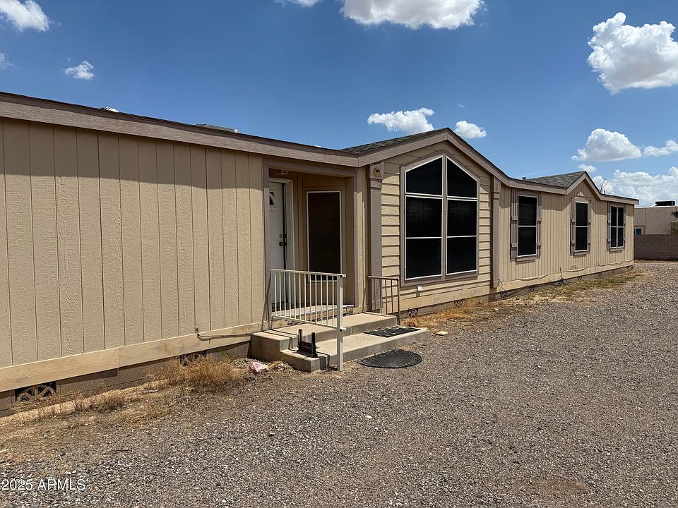 Large approximately 2432 sq. ft. manufactured home on 1.204 acres with a 30 x 40 Burger Steel building with 14 foot roll up garage door with 400amp electrical service is a workman's or horse lover's paradise. This Non-HOA property is perfect for running a business out of the large warehouse or covered storage of your RV! This 4 bedroom, 2 bath property with a huge family room has new carpet throughout. Well water is shared with 5 others and property is on septic. Back slab patio is 10' x 30. This property offers a lot of flexibility to make yourself a special oasis and add value with space for an additional dwelling unit. Property is fully fenced and includes 2 rolling gates and two pens for horses. This will be an 'as-is' sale.