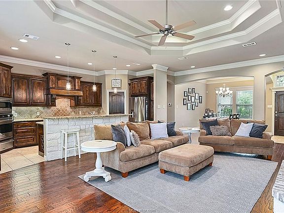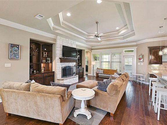 Like new 4 bedroom, 3 bath stone & brick home in Austin's Colony, with luxury details & high quality workmanship. The floor plan offers privacy to all with a split bedroom arrangement & 3 bathrooms. The kitchen offers custom wood cabinetry, built in shelving, granite countertops, stainless steel appliances, a gas cooktop, warming drawer, & beautiful fixtures. The ceilings have extensive crown molding, tray ceilings, while the floors have hand scraped wood planks. The master retreat is spacious with a huge walk in closet & dream bathroom. The covered patio boasts an outdoor kitchen with the finest appliances to entertain your many guests! Hurry to view this gorgeous home!