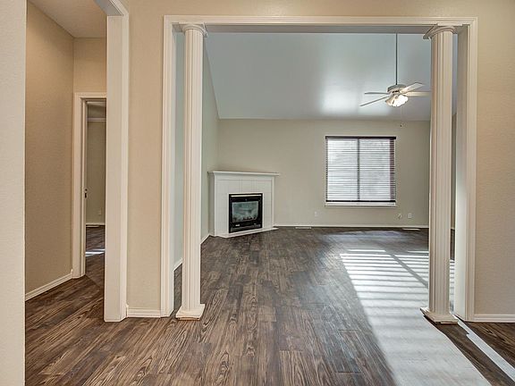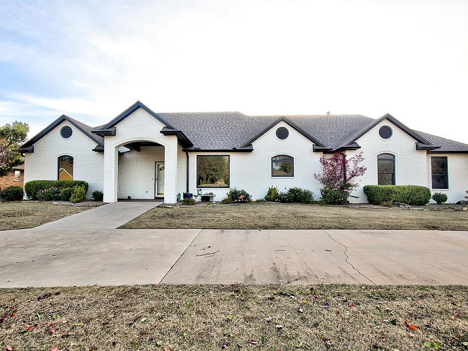 Stunning home tucked away on a beautiful tree lined street with side facing garage and circle driveway providing wonderful curb appeal. The exterior of the home was professionally painted in 2023 giving a gorgeous modern look with all new Anderson Windows and new guttering. New complimentary colored roof was installed in 2024. Upon entering the home you'll notice all surfaces have received a refresh with a warm paint color through-out plus traditionally colored luxury vinyl wood look flooring, both highly durable and visually pleasing. Vaulted ceilings in the living room add architectural interest to the spacious area. Custom fitted wood blinds allow for privacy while adding beauty to the new windows. The kitchen has an eat up bar with new stainless-steel dishwasher and range. A cozy study is fully equipped with built in shelving perfect for your home office, organized playroom, or the flex space that suits you. Each bedroom provides a walk-in closet, thoughtfully curated with built ins and great space. The popular split floor plan separates the primary suite from the two additional bedrooms and offers large en-suite complete with uniquely tiled shower, separate jetted tub and dual sinks in the vanity. Expansive, fully fenced backyard allows space for entertaining with large concrete patio.