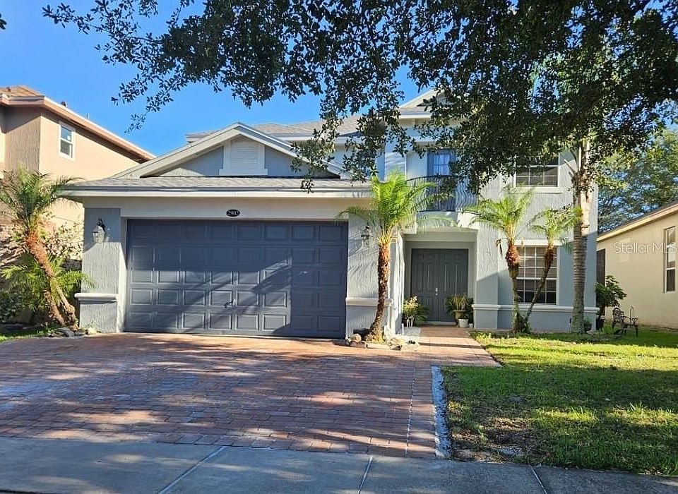 This stunning home is situated in a gated community and features 5 bedrooms. The master bedroom is located on the first floor and boasts his and her walk-in closets, an oversized shower, a garden tub, and double vanities. As you enter the home, you will find the formal dining and living room area with carpet flooring. The sliding glass door leads to the 8x8 patio. The kitchen offers plenty of cabinet space and is connected to the family room. Additionally, there is a half bathroom and a laundry room with a closet on the first floor. The second floor houses 4 more bedrooms, a Jack and Jill bathroom, a loft, and an additional guest bathroom.