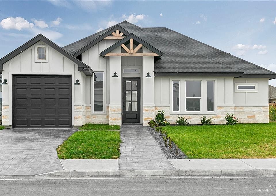 New Farm-Style Home available in the subdivision "McColl Estates" in the City of Hidalgo! This stunning 3-bedroom, 2-bathroom home with a 1-car garage features a modern open-concept layout that maximizes living spaces. Beautifully designed with neutral tones complemented by black and gold accents throughout. The private dining room with sliding doors allows an abundance of natural light, and the spacious master bathroom includes double sinks and frameless glass shower doors. Enjoy the convenience of a large laundry room and stamped concrete on the front sidewalk. Priced at just $255,000, this home won’t stay on the market for long. Schedule your showing today before it’s gone!