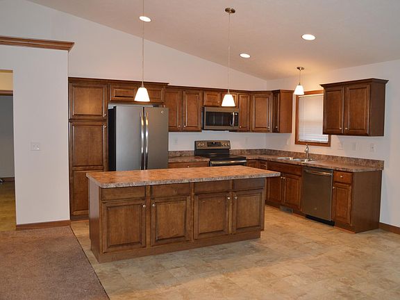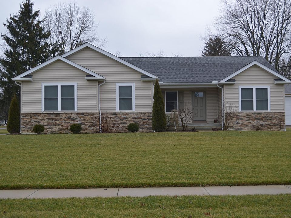 Nice corner lot, house built in 2015. Two car garage, open kitchen and great room. Laundry room on first floor. Patio off of dining area, shed for more storage. Full basement, Split bedroom ranch, master bedroom with master bath. Kitchen appliances furnished. Absolutely no pets or smoking allowed. Renter pays for all utilities and lawn maintenance.