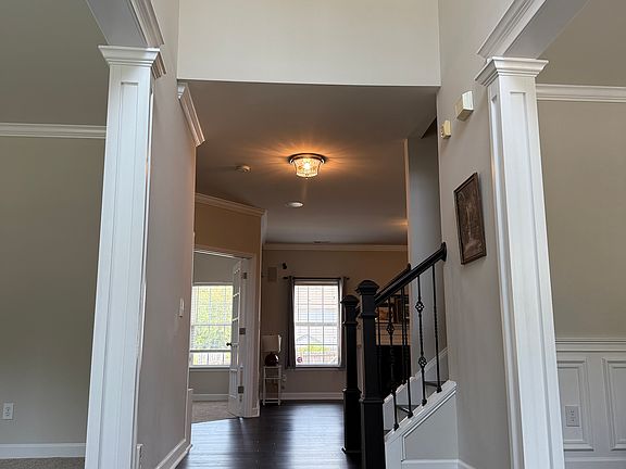 High ceilings, dark oak hardwood floors, plush carpet in bedrooms