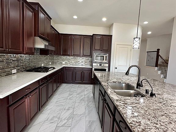 This stunning home offers everything you need spacious and thoughtfully designed with 5 bedrooms, 3.5 bathrooms, a private study, game room, media room, and a 3-car garage. Step inside to elegant tile flooring that flows from the entryway through the formal dining and family rooms, all freshly painted. The family room features soaring ceilings and a cozy fireplace, perfect for relaxing evenings. The gourmet island kitchen is a chef's dream, showcasing rich maple cabinetry, stainless steel appliances, a stylish subway tile backsplash, and a large central island ideal for entertaining. The luxurious primary suite is located on the first floor and features a granite vanity, soaking tub, separate shower, dual sinks, and a walk-in closet. Upstairs, enjoy both a spacious game room and a dedicated media room for movie nights. Situated on a corner lot, the home also includes an extended covered patio-perfect for outdoor gatherings. Zoned to top-rated Katy ISD schools!