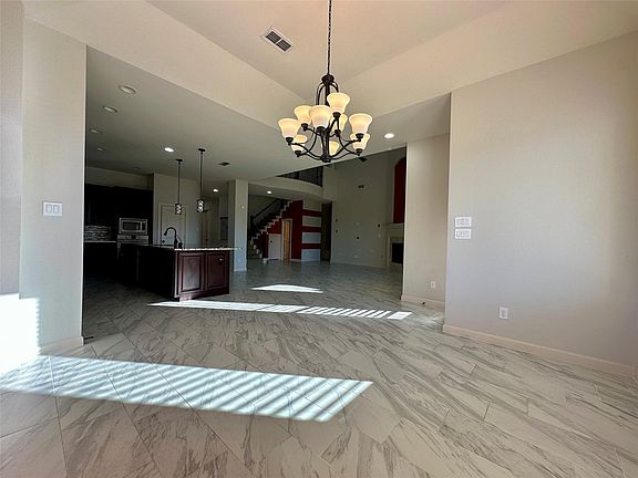 Cozy fireplaceExtended covered patioStainless steel appliancesFamily roomGranite vanityCorner lotSoaking tub