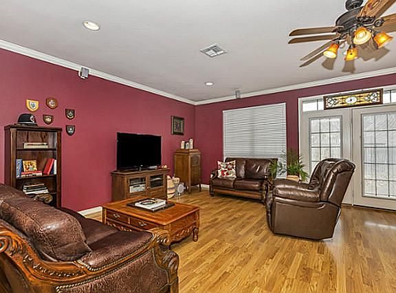 Live in this spacious, custom built home w-5 bedrooms, 2.5 baths, & updates galore. Features lots of updates, including laminate flooring, SS appls., granite c-tops & 50 yr. roof. Mstr bath has double sinks, jetted tub, sep shower. Lots of storage w-WI closets & window seat. Wet bar in 3rd lvg. Dbl sided FP. Surrounded by other custom homes, close to TX A & M.. Bkyd has stained, scored concrete deck, sprinkler sys., 10 X 12 storage shed.