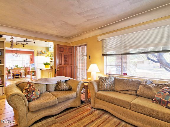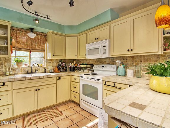 Seller will entertain offers between 265k-275K.Picture yourself in this charming 3 bedroom 1 & 3/4 bath mid-century home in central Tucson with easy access to everything!! Freshly painted exterior & security screen doors welcome you inside the cozy living room with coved ceilings, care free ceramic tile floor and flagstone wood burning fireplace. Small but versatile this home has fabulous features! In 2011 Kitchen completely remodeled with a breakfast bar, all new appliances, cabinets & counter tops. Around 2005 Seller added a huge walk in pantry/ storage closet! One bedroom closet is designed for crafting and may be converted back to a closet. Shaded patio, new ceiling & large freshly painted art studio, workshop or exercise space. Double brick construction. Endless Possibilities Flat roof just re-coated and shingles patched. 2 new rain barrel catchments. Enjoy mature landscaping. Studio space is approximately 400 sq. ft. not included in sq. ft. Buyer to verify all dimensions. 2022 installed new hot water heater with drip pan & new dryer vent. Minutes to the JCC & Rillito bike / walking trail. Some furnishings offered on a separate bill of sale. Wine / Book cabinet does not convey. Won't last long!