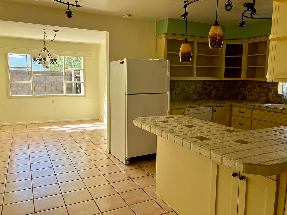 Charming 3 bedroom, 2 bath, 1260 sq ft bungalow on a quiet cul-de-sac in up-and-coming North Dodge. House is clean and tidy with a big, open kitchen and lots of light. Many closets + washer/dryer. Third bedroom has a fold-up in-set crafting station/office desk nook that can be disassembled. Large, covered front porch is perfect for lounging. Fenced in backyard has a separate gated entrance for parking a trailer or RV if needed and a large, secure back room for storage or studio space. Neighborhood public schools are highly rated. Minutes to the JCC & Rillito bike / walking trail and the hipster Hop Shop and Hello Bicycle Coffee are just up the street! Small, neutered, well-behaved dogs and cats welcome with cleaning fee and other pets considered on a case by case basis. No smokers. 1 yr lease. Renter responsible for all utilities, and basic maintenance. Owner provides landscaping service 4 x year