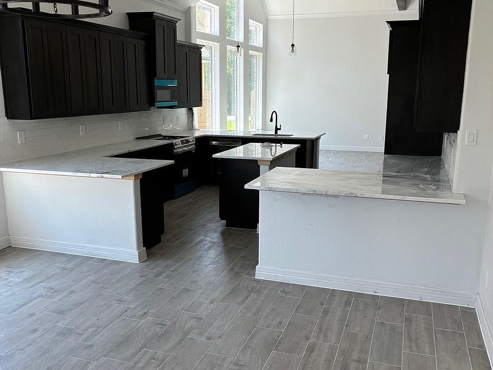 Thomas Kade is offering this beautiful one story 3/2/2 Special features- high ceilings, wood like tile throughout, carpet in the bedrooms, custom wood cabinets, granite counter tops, recessed lighting throughout, crown molding, foam insulation exterior walls, blown insulation in the attic, ample windows, walk in closets in the bedrooms, and oversized secondary bedrooms. Open concept-Kitchen open to living room, plenty of counter space, ample cabinets & drawers, walk in pantry. Large living room with vaulted ceilings, accent beam. You will love the size of the primary suite and closet, soaking tub and large shower.