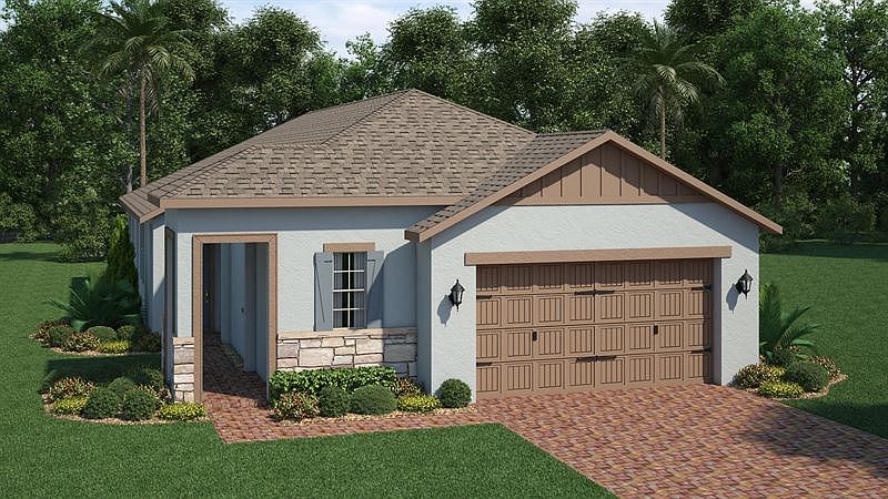 The Sunrise Plan at Arden Park North is a lovely one-story home with three bedrooms, two baths, and a two-car garage. This home offers an open floor plan with great room, dining room, a kitchen centered with an island, and a pantry. The great room allows outdoor access to a covered lanai. The owner's suite includes a bath with a large shower and generous walk-in closet. This home also includes two more bedrooms, a bath and a great inside laundry room.