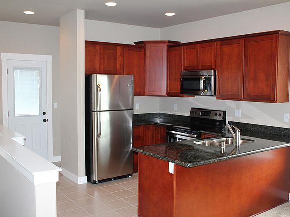 Upgraded furnishings with granite kitchen counter tops, tile floor, 2-panel craftsman style doors and white trim work.