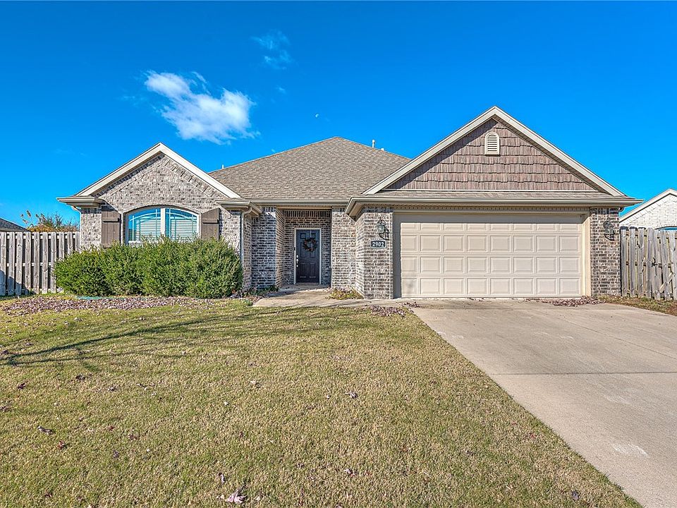 Impeccably maintained 3 bed/2 bath all-brick home built by Riverwood Homes (2018) in a desirable Rogers location! This single-owner, energy-efficient home features a sought-after split floor plan, beautiful finishes, and modern amenities. Enjoy granite countertops in the kitchen & baths, a gas fireplace, and crown molding. The spacious Primary Suite includes a luxury bath with a whirlpool tub, walk-in shower, and private water closet. Features include a covered patio, pull-down attic storage, and a private backyard. Excellent location, close to everything Rogers has to offer. Move-in ready!