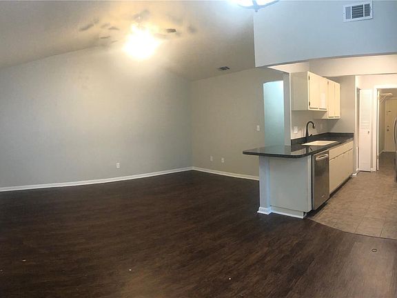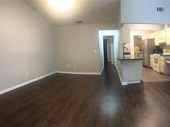 2 bedroom 2 bathroom single story townhome with open floor plan and fenced in backyard. One bedroom is in the front of the home with a bathroom including a walk in shower and linen closet. The master bedroom is in the back with its own en suite with shower/tub combo and built in cabinetry in the en-suite a sliding glass door that leads you to the back yard. The home has vinyl plank flooring throughout (no carpet), vaulted ceilings with fans in every room and stainless steel appliances in the kitchen. Washer and dyer inside the oversized laundry room with plenty of room for storage. Owner pays for quarterly pest control. Renter responsible for utilities and yard maintenance. First month and security deposit due at signing. No smoking allowed and up to 2 pets with pet fee.