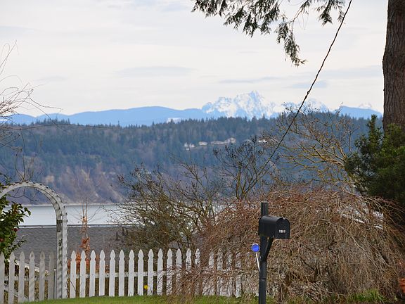 East Side Views of Livingston Bay and the Cascade Range from this 3 bedroom 1.75 bath with 2 car attached garage, quality build. Wood and tile floors, new paint, lighting, carpet, vinyl blinds, SS appliances, and counters/backsplashes. Freestanding propane fireplace. Views from the living room and master. RV parking, fully fenced backyard, BBQ gas hook up on deck, wired for hot tub, new deck rail/pickets. Beach rights at beautiful Tillicum Beach below, just a short walk away. Hurry won't last!