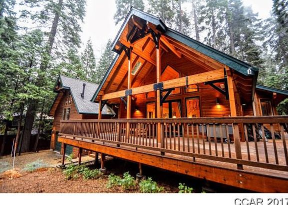 Custom-designed 3,100 sq ft Chalet-style cabin on ~0.48 acre lot on quiet Zuni Drive. 4 bedrooms & 4 bathrooms (one with claw-foot tub). Gourmet kitchen has custom cedar cabinets, stainless-steel appliances, slab-granite counters & Wolf dual-fuel stove. White fir wide-plank flooring throughout custom-milled from trees that grew on lot. Master Suite with jetted tub and walk-in shower on main level. Massive Great Room with free-standing wood stove has French doors leading to large covered deck. You can even BBQ when it's snowing! Attached and over garage huge bonus room or guest apartment (a 4th bedroom), with propane wood stove, has own bath & shower, and 2-person sauna. All-cedar siding and ~1100 sq ft Trex decking. Security system with 24 hr monitoring. Home has generator for power back up. 18 miles to Bear Valley/Lake Alpine for Winter downhill & x-country skiing and Summer lake, hiking & mountain-biking activities. Calaveras Big Trees State Park just minutes away, with many hiking/biking trails, free Saturdays-in-Winter snowshoe tours and, of course, the giant redwood sequoias. Lots of storage inside, in garage, and in under staircase storage room off garage (lockable).