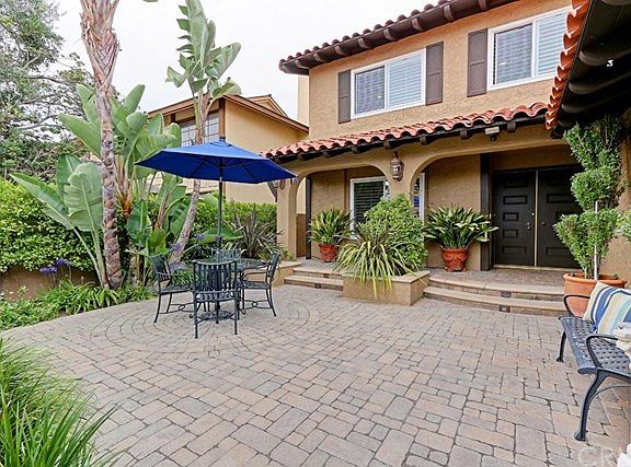 Here it is, a beautiful Spanish-style home located in the Los Verdes area of Rancho Palos Verdes. This two-story home has it all starting with the elegant courtyard entrance with its serene fountain, plants and landscaping. As you enter the foyer, the feeling of light and openness abounds. The spacious living room and dining area open to the back yard through lovely French doors. Adjacent is the remodeled kitchen with granite counters, a center island and lots of windows to watch the action in the back yard. The family room is just steps from the kitchen and is the perfect place to curl up and watch a movie. The rear yard brings inside entertaining outside with its large patio, ample grass area, verdant landscaping, and impressive three-tier fountain. A two car garage offers direct access to the house. All five bedrooms are located upstairs along with 2 updated bathrooms. The location is very convenient to shops and schools. Stylish stone floor with mosaic inserts in the living areas plus tongue and groove walnut floors throughout the private rooms. The neighborhood enjoys wonderful breezes and sweeping views of the Pacific Ocean. Don't wait, arrange a showing today!