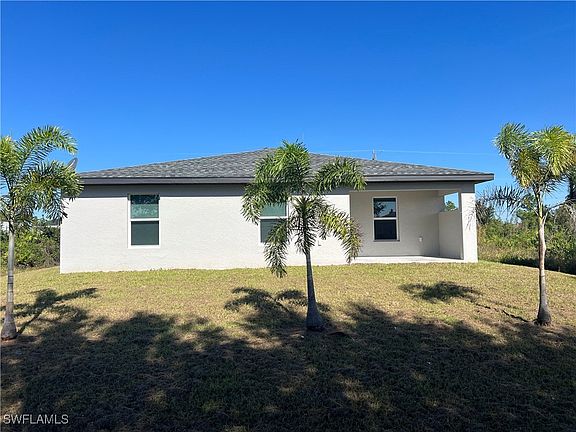 NEW PRICE ADJUSTMENT!!! Discover your dream home in the serene and growing community of Lehigh Acres, FL. Built in 2023, this stunning 4-bedroom, 2-bathroom home is designed to offer comfort, style, and peace of mind for you and your family. Boasting contemporary finishes and thoughtful features, this property is move-in ready and perfectly suited for modern living. Key Features include; Spacious Layout: The open-concept floor plan seamlessly connects the living, dining, and kitchen areas, creating a bright and welcoming space perfect for entertaining or relaxing. Stainless Steel Appliance Package: The sleek, fully equipped kitchen features brand-new stainless steel appliances, durable countertops, and abundant cabinet storage, making meal preparation a delight. Hurricane Impact Windows and Doors: Designed with safety in mind, this home is equipped with impact-resistant windows and doors, providing extra protection and peace of mind during Florida’s storm season. Large Backyard with Open Patio: The expansive backyard is a blank canvas ready for your personal touch—perfect for barbecues, gardening, or simply enjoying Florida’s sunshine. The open back patio offers a great space for outdoor lounging or dining. Modern Bathrooms: Both bathrooms are thoughtfully designed with contemporary fixtures, premium finishes, and plenty of storage for everyday convenience. Two-Car Garage: The spacious garage offers ample storage and parking, keeping your vehicles secure and out of the elements. Location Highlights: This home is nestled in a quiet neighborhood that combines the tranquility of suburban living with proximity to essential amenities. Enjoy the peace and privacy of your surroundings while being just a short drive from shopping, dining, parks, and schools. Whether you're a growing family or looking to settle into a peaceful retreat, this property offers the perfect balance of comfort and practicality. With its modern construction, top-notch features, and prime location, this home is an incredible opportunity in the vibrant Lehigh Acres market. Don't miss out—schedule your private tour today and make this stunning property your own!