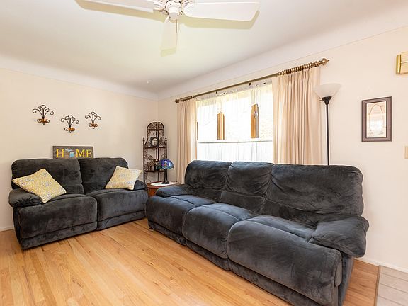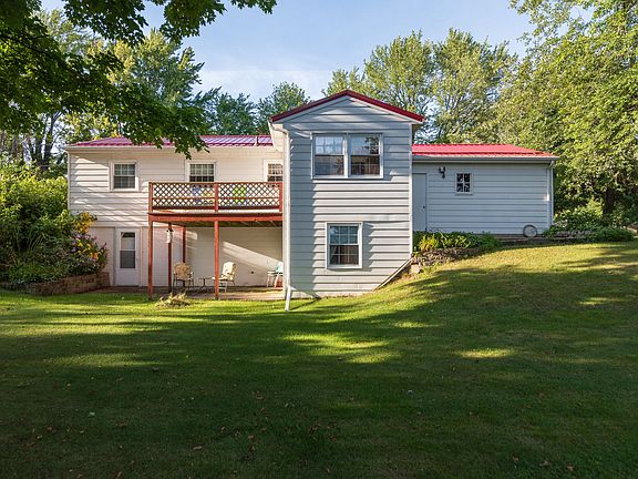 What a sharp and tidy package! Move right in without lifting a finger. This ranch walkout has highlights such as a (TOO COOL) new red Amish metal roof, real hardwood floors (exposed/refinished in the living rm, and under carpet in the bedrooms), new water heater & softener, replacement windows, 2 car attached garage, ceiling fans in every room, & more. The oak kitchen has matching appliances and an eat-in area. Adjacent is the bonus room-used currently as a formal dining-that leads to the back deck. The walkout level is mostly finished, with Family Room, game area, full bath and laundry/storage area. The lot feels expansive-backing up to a peaceful cornfield, with thoughtful landscaping touches throughout. An excellent centralized location with a country feel!
