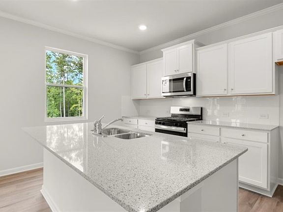 Oconee Overlook is home the popular Cali floorplan in Gainesville, GA! The location of this community gives residents the opportunity to enjoy all Lake Lanier and Gainesville has to offer. This 4 bedroom, 2 bathroom ranch floorplan home offers a cozy yet open space with everything you need and more to start your new life at Oconee Overlook. As you make your way off the front porch, a long foyer with a coat closet greets you. Along the hallway you find 2 additional bedrooms and a full bathroom. Both front rooms offer ample space with walk-in closets. Down the hallway further to the left is the third additional bedroom, the laundry room, and access to the 2-car garage. Stepping into the main living area, homeowners will enjoy the open layout. The updated kitchen is situated with granite countertops, exquisitely crafted kitchen cabinets, stainless-steel appliances and more. A dining area sits right off the kitchen and living room with easy access to the covered back porch. Get cozy with a good book or movie in the spacious and inviting living room area. All the main living areas boast durable LVP flooring for the active households. Tucked in the back left corner off the living room, homeowners can enjoy rest and relaxation in the primary suite. The primary suite offers a large walk-in closet, dual granite vanity, and separate soaking tub and tiled walk-in shower. If the Cali plan sounds like the right fit for your family, give us a call at Oconee Overlook to make 2903 Daxton Lane your home!
