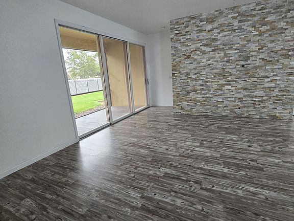 Three oversized sliding glass doors leading to a private patio with peaceful pasture views