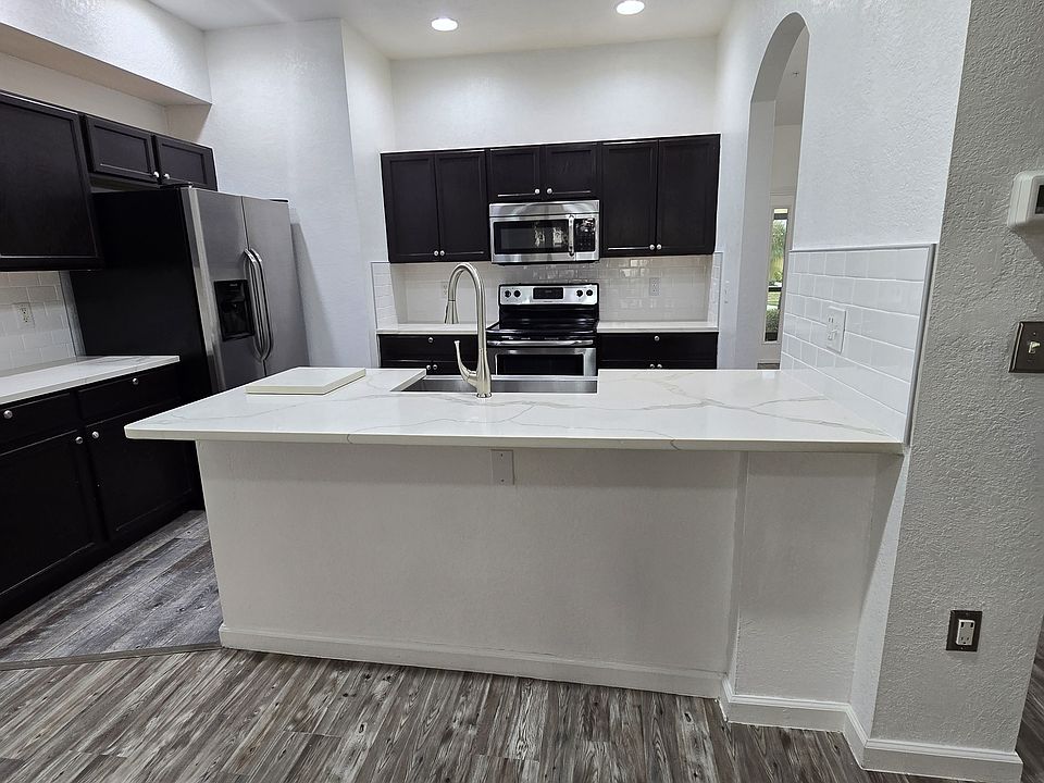 New fixturesPrivate patioUpdated half bathJack-and-jill bedroomsHigh ceilingsWhite quartz countertopsMaster suite