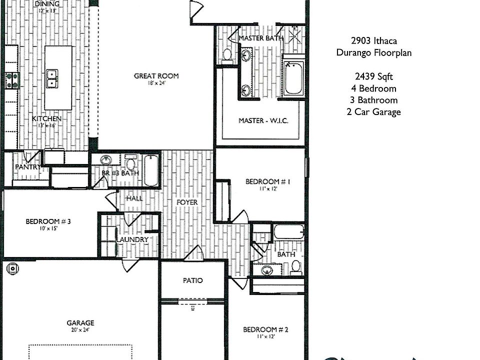 Welcome to the Durango! This stunning new construction spans 2,439 square feet of modern elegance and thoughtful design. Bright and spacious, the open-concept floor plan features soaring ceilings, large windows, and sleek finishes throughout. The great room boasts a generous island, beautiful granite countertops and open concept—perfect for entertaining. The luxurious primary suite includes a spa-inspired bathroom with a soaking tub, shower, and walk-in closet. Additional highlights include 3 additional bedrooms and beautiful tile with stylish lighting fixtures. Outside, enjoy a beautifully landscaped yard and a private patio ideal for outdoor gatherings. This brand-new home is ready for you to move in and make it your own!