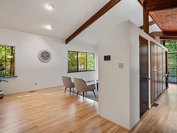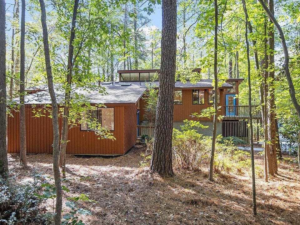 The Ara and Hjordis Tourian House is a post and beam, modernist, Deck House built in Duke Forest by Bomar Construction of Chapel Hill. 4 bedrooms /3 full baths. Split foyer. Open, flexible, spacious interior. This 3000+ SF contemporary home was architect designed for passive use of solar energy with clerestory windows gently filtering natural light into rooms from ceiling height. The visuals are stunning and warm. Large primary suite has separate study and screened porch. Music studio offers additional possibilities as an expansive office, home theatre, art studio, recreation, teaching space, and more. Hardwoods, exposed pine beams /millwork, and original cypress siding are in beautiful shape. One owner since being built in 1980. Original blueprints convey. Proximity to Duke and downtown. This is a rare opportunity to own a truly unique and special home built with thoughtful consideration of design, materials, workmanship, and natural surroundings. Your dreams are now closer than ever.