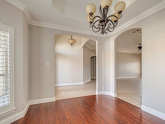 Beautiful and clean 4 bed 2.5 bath home featuring an open floor plan and lush landscaping. The living area boasts natural light and a striking fireplace, while the kitchen offers ample storage, a breakfast bar, and an island. Sequestered master suite includes a jetted tub, separate shower, and large closet. Crown molding, arched doorways, and a coffered skylight add elegance. Enjoy a covered patio, spacious backyard, water well for irrigation, plus a bonus room with a mini-split system.