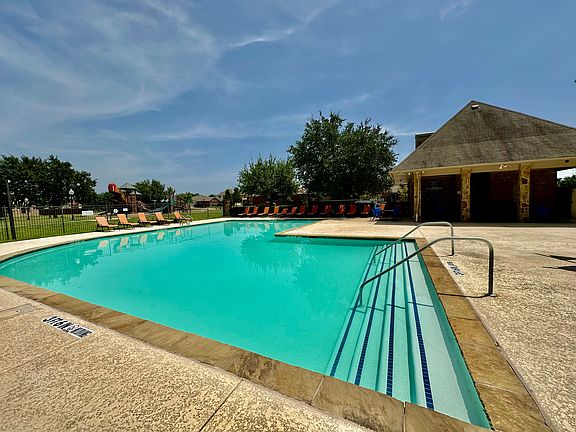 Spacious entry hall and open floor plan. The primary bedroom and en-suite bath are split from the other 3 bedrooms for privacy. Kitchen with island, abundant cabinets, and pantry. Flex office or dining room. Refrigerator, microwave, washer, and dryer included. Private fenced backyard, Close to community pool, park, and new Elementary school.