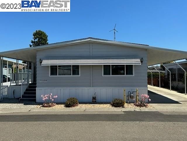 Triple wide in Georgian Manor with large yard space! This spacious home features: 2 bedrooms; 2 full baths; living room and separate family room; dining area with built in hutch; primary bedroom with walk in closet and private bath; laundry room with washer, dryer and bonus refrigerator; 2 storage sheds; extra wide carport; great location overlooking the green belt; call this place home and enjoy your morning coffee on the side porch!
