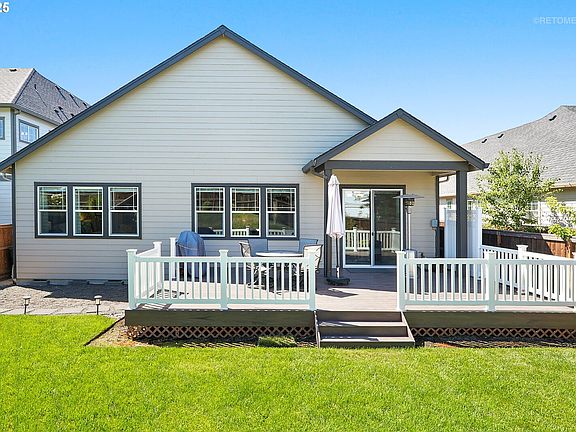 Welcome to 29039 NW Keenon St—a beautifully appointed home on an oversized, fully landscaped lot in the heart of North Plains. Enjoy outdoor living on the expansive Trex deck, surrounded by privacy and mature landscaping.Inside, the home boasts soaring ceilings throughout, creating a bright and airy feel in every room. The kitchen and bathrooms are finished with elegant quartz countertops, and the living area features a cozy gas fireplace—perfect for relaxing or entertaining. High-end window coverings add style and function to every space.Thoughtfully designed, the layout includes a hall bathroom that connects directly to the second bedroom, offering added convenience and flexibility.Located just minutes from Hwy 26, Intel, and Nike, this home offers an ideal balance of comfort, design, and commuter access. Don’t miss this rare opportunity in a growing community!