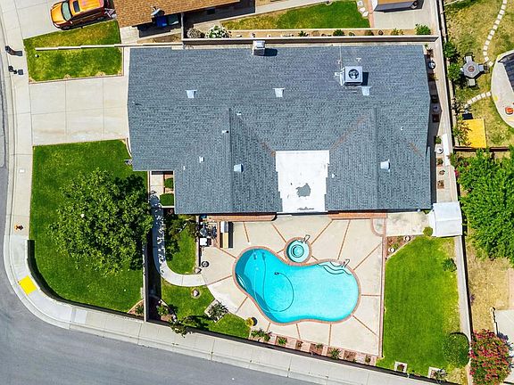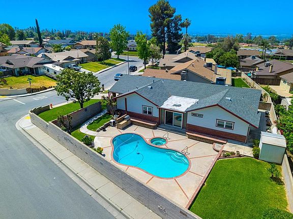 Nestled in the foothills of the San Bernardino Mountains (east of LA and west of Palm Springs), this beautiful and METICULOUSLY MAINTAINED home is situated on a spacious CORNER LOT in desirable North Highland, with picturesque views of the surrounding mountains and hills from it's sparkling POOL & SPA and beautifully manicured yard. You'll appreciate the many upgraded and energy efficient features both inside and out. The interior boasts durable TILE FLOORS THROUGHOUT, a cozy gas log FIREPLACE flanked by stained-glass windows, a well-designed kitchen that features GRANITE SLAB countertops, updated appliances, like Electrolux and KitchenAid, and SOFT-CLOSING CABINET DOORS with roll-outs and other custom features. The primary bedroom has an en-suite bath with cultured marble shower surrounds, upgraded lighting and plumbing fixtures, and all bedrooms have spacious CUSTOM ORGANIZED CLOSETS, including the hall closet. The home's exterior features NEWER SIDING that should never need a coat of paint, even the eaves are enclosed by siding and include screened vents to prevent birds and other intrusions from entering the home or attic space, and best of all...NEWER, ENERGY EFFICIENT, VINYL WINDOWS AND DOORS throughout. Let's not forget the garage, with loads of premium STORAGE CABINETS, you'll have plenty of space for your stuff. Some furnishings inside are available/negotiable with the purchase of the home. This home with a beautiful Magnolia tree out front will not disappoint!