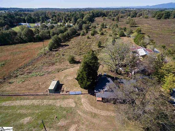 The land and home is presented by Julie Murad with Keller Williams Greenville Central. Give Julie a call for more information. Welcome to a piece of history in the Campobello area. This home and the 5.1 surrounding acres used to be a thriving business back in the day. Orchards of peaches! Several pecan trees are still producing. The steel structures left used to be barns that held tractors and equipment. The home features three bedrooms, two baths, living room and large kitchen with eat in area, mud room and the foyer is 30' deep. The home and the structures are sold AS IS. Financing options will be limited. A 203K renovation loan may be an option. The land itself would make a beautiful home place or places for a few homes.