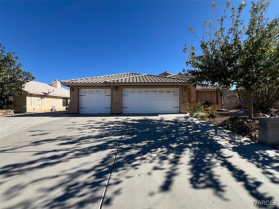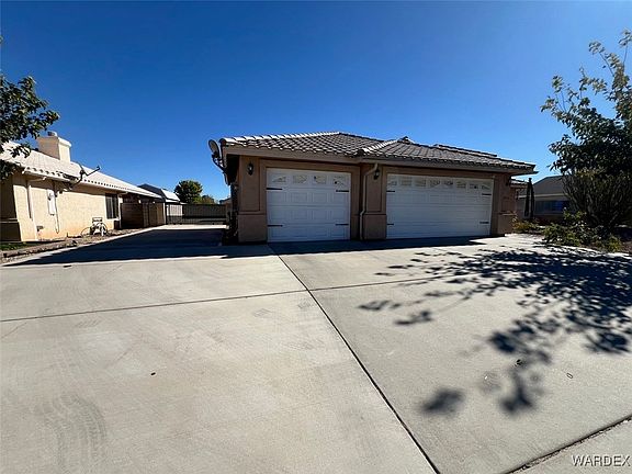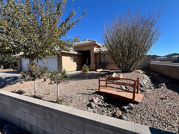 Beautiful home located in Kingman Air-Rail Manor! Custom built by Hilltop Homes! Nicely landscaped with mature trees and a rock river bed with a bridge. There's a 3 car garage and an extended cement pad that leads to a drive thru gate for RV parking. Open concept floor plan features vaulted ceilings... tile flooring... fireplace in the living room...decorative pot shelves and ceiling fans! The kitchen boasts tile counter breakfast bar...large pantry...electric smooth top stove... built in microwave...fridge... dishwasher and a casual dining area! There are 3 bedrooms with 2 bathrooms. The main bedroom has a walk in closet, as well as a separate garden tub/shower! Call your Realtor today for a tour!