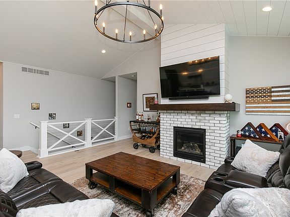 Better than new- Gorgeous ranch in NE Grimes! 4 bedroom, 3 bath +an office- WALK OUT bsmt. Main level features a beautiful open concept kitchen/dining /living room w beautiful fireplace- check out the gorgeous ceiling! Tons of kitchen cabinets, large island for extra seating, stainless steel appliances & a HUGE WALK IN PANTRY! There is a home office, lg bedroom, full bathroom AND THEN a great sized master bedroom with en-suite that has a large tiled shower, huge dbl vanity/linen closet, separate toilet room and a CUSTOM WALK IN CLOSET. Laundry room with custom folding shelf is off the master closet & lg mudroom area off the garage. Covered deck with TV -walk down to your patio and fenced in yard. Downstairs features a large open family room- great for entertaining, beautiful wet bar, 2 more large bedrooms (one with a walk in closet) and a 3/4 bath with dbl sinks. 2 storage areas, work out area. Backyard is fully fenced, irrigation, extensive landscaping and a great front porch! All appliances stay plus custom blinds thru out! Tons of custom finishes and upgrades! This home is a MUST SEE!