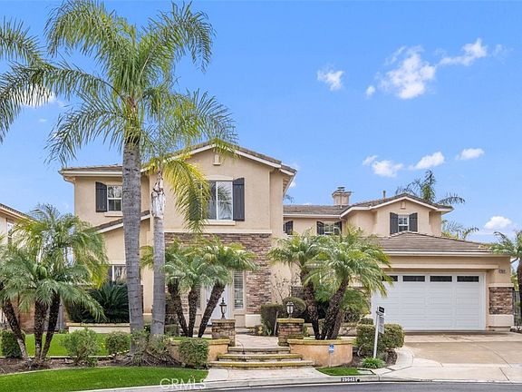 Beautiful 6 bedroom, 4.5 bath home nestled on a cul-de-sac within the prestigious hillside community of Santiago Canyon Estates. This luxury home offers a perfect blend of comfort and sophistication. As you step inside, the gourmet kitchen greets you with top-of-the-line Bosch appliances, featuring a double oven and microwave for culinary enthusiasts. Marvel at the travertine marble floors that adorn every room, while each bathroom has been tastefully redone in marble, providing a spa-like experience. Entertainment is at its finest with surround sound TV audio, outdoor speakers controlled by a separate amp, and a massive subwoofer. The upstairs gym, complete with rubberized flooring and mirrored walls, offers a private space for your fitness routines. For the wine connoisseur, a cellar capable of housing 800 bottles at a perfect 55 degrees awaits. The entire home is equipped with a dual variable speed AC/heat system. Home is powered by solar panels and a Tesla battery that not only make your home eco-friendly but also significantly reduces your electric bill. Practicality meets luxury with an EV built-in charger for your electric vehicle. The security-conscious homeowner will appreciate the highly upgraded security system with special screens, UV safety film, and electronic door locks, all accessible and controllable through your phone or keypads. The backyard is an entertainer's paradise, boasting a pool and spa heated by a powerful system. The manicured garden features an irrigated vegetable patch and artificial grass that not only enhances the aesthetics but also lowers water consumption. Home is move-in ready with recently polished floors, freshly refinished cabinets, and an included refrigerator with an ice maker, washer, dryer, patio furniture, and a new reverse osmosis water system. If you desire a home in impeccable condition, this residence promises to fulfill your aspirations