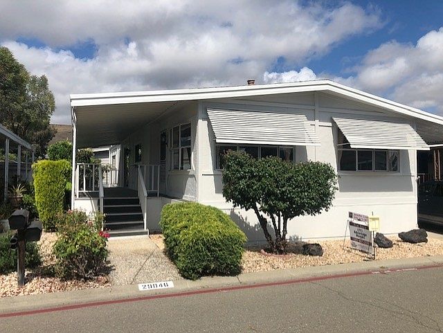 Freshly painted and ready for move in, this mobile home in Spanish Ranch 2 (adult 55+ park) will be a great place to call home. Enjoy your morning coffee on the large side porch! This home has: 2 bedrooms; 2 full baths; spacious living/dining area; kitchen with breakfast bar over looking family room area; bar area in living room and slider to porch; master suite with large mirrored closet and private bath with 2 sinks, soaking tub and stall shower; indoor laundry room with washer, dryer, and storage; laminate flooring in all living areas; storage shed; home near community entrance and guest parking at rear of lot