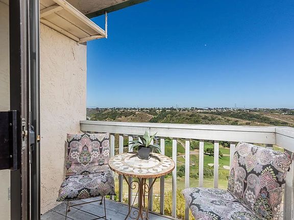 Lovely, top floor view home overlooking Tecolote Canyon and the golf course. Pergo type flooring is installed throughout the unit and there is the convenience of the in-unit washer and dryer. Upgrades include; redesigned fireplace area, track lighting in the living room and bedroom, new skylights, refinished kitchen cabinets and newer refrigerator. The charm of the living room with its wood burning fireplace is elevated through the panoramic view beyond, looking east to the sunrise and the pretty canyon and golf course below.