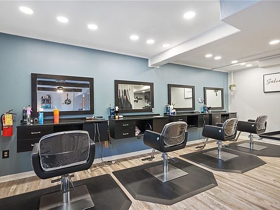Incredible Investment opportunity! This commercial building features multiple businesses, a two story 3-bedroom apartment, and a two-car detached garage with additional storage above. Live in the upper apartment while collecting rent from the businesses and or garage. The lower level features a beautifully updated hair salon with a half bath and a separate rental office space that includes its own additional half bath. The 3-bedroom apartment has been renovated from top to bottom with newer flooring throughout, an updated kitchen with stainless steel appliances, two remodeled bathrooms, and includes a private back deck with a newer concrete patio. The possibilities are endless with the two-car detached garage and additional upper storage. Other updates include: Newer HVAC and metal roof. A must see one of a kind property!!
