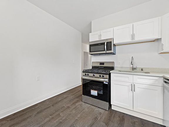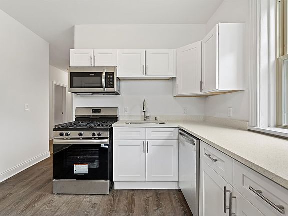This newly renovated and generously sized three-bedroom, one-bath apartment offers a modern living experience with stylish upgrades throughout. The kitchen features granite countertops, sleek white cabinetry, and stainless steel appliancesincluding a dishwasher and microwavewhile rich hardwood flooring extends through the entire home. The open-concept layout seamlessly connects the spacious living and dining areas, creating an ideal space for entertaining or relaxing.
