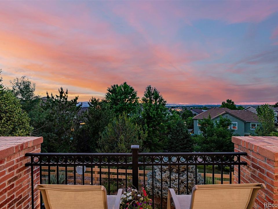 Coveted Firelight neighborhood home on cul-de-sac with mountain and city views on a large lot. Discover elegance and functionality in this beautiful home designed with entertainment and comfort in mind. This home features a fully finished walkout basement with a theater room, workout space, wet bar, and storage. The expansive main deck and primary suite with a private deck offer perfect spots to relax and enjoy the stunning surroundings. The newly painted primary bedroom is a retreat, boasting coved ceilings, two walk-in closets, and spectacular mountain and city views. The beautifully renovated custom kitchen (2020) is a chef's dream, with Kingdom quartz countertops and cabinets, a large island with additional storage, a GE Monogram gas range with grill and convection oven, a pull-out spice rack, and a pull-out cutting board drawer. Novella engineered hardwood flooring was installed on the main level in 2020 adding elegance and durability. The family room fireplace surround and hand-picked MSI stacked stone and barn wood accents and mantles were custom installed in 2017 with the custom-built barn doors to match. A newer furnace, air conditioning unit, and a Rheem tankless water system (2022) ensure comfort and peace of mind. The three-car garage provides ample storage and is wired for electric vehicle charging. Additional features include composite decks with concealed screws, a recently painted exterior (2021), new garage doors (2021), an attic fan, and a whole-house steam humidifier. The professional landscaping enhances the curb appeal and provides a serene environment for outdoor gatherings with great entertainment spaces from top to bottom. This home is perfect for hosting and enjoying life’s finest moments. Don't miss the opportunity to own this extraordinary home.