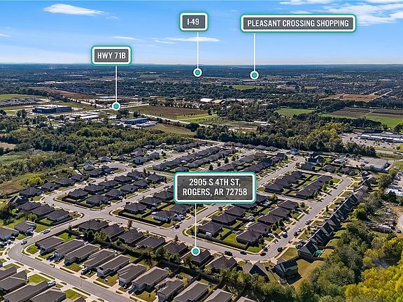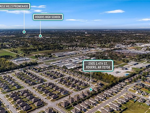 Welcome to 2905 S 4th St! The home is tucked in an established Rogers neighborhood close to everything you need. This one-level, 3-bed, 2-bath home features a smart split floor plan, covered patio with private backyard, & a spacious living area with a gas fireplace. The kitchen includes granite counters, plenty of storage with it's own pantry. The primary suite offers double sink vanity, walk-in closet, soaking tub, & separate shower. Enjoy your covered back patio & spacious fenced in yard for easy outdoor living, perfect for pets. All this within 10 minutes to I-49, Pinnacle Hills Promenade, Walmart Supercenter, Topgolf, Rogers Aquatic Center, Fitness One, & endless dining options. Move-in ready & in a location that puts it all at your doorstep.