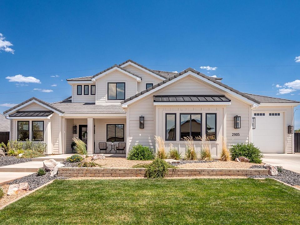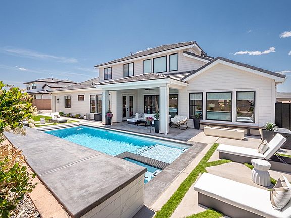 Exquisite custom home located in the Arbors, desirable Little Valley neighborhood. Quality attention to detail and high-end selections throughout! Home features a stunning iron entry door with grand entry flanked by a private office and a formal living room. Main floor has 2 bedrooms. Hardwood floors and oak railings, 2 floor to ceiling fireplaces, 3 panel sliding door that opens to your backyard oasis. Vaulted entry, 10' ceilings throughout, butler's pantry with beverage fridge & station, custom shelving in master closet, waterfall edge quartz countertop, double fridge/freezer, water softener, tankless water heater, custom finish work and quartz backsplash are some of the details that carry throughout. There is space on the back of the home that could be used for a future pool bathroom. Storage is ample in the oversized RV garage with a bonus storage room connected through the back walk-out. The laundry & mudroom delivers custom floor to ceiling built-ins. Fully finished/gated yard with custom saltwater pool, surround sound and landscape lighting.