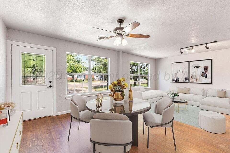 THIS IS THE ONE!!!!! This charming 4-bedroom, 2-bathroom residence features two cozy living areas, perfect for family movie nights or entertaining friends. Fresh paint and new windows fill the space with light, creating a welcoming atmosphere throughout. The heart of the home is a beautifully updated kitchen, complete with brand-new appliances, ready for you to whip up delicious meals and create lasting memories. Outside, the spacious backyard invites you to enjoy sunny afternoons and weekend barbecues, while a large shop offers plenty of room for hobbies or extra storage. This home is also conveniently located near Caprock High School.