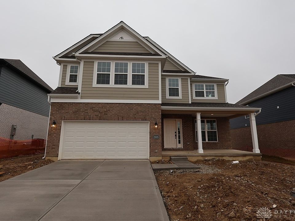 The beautiful Fairview model by M/I Homes with over 3300 square foot is brand new construction in The Beavercreek Schools System! This show stopper features a dramatic open floor plan. 2 story home with 4 spacious bedrooms on 2nd floor and a guest suite on the main floor, with 3 baths. Gourmet kitchen includes solid surface counters and SS appliances w/ complimentary designer cabinets are any chef's dream. Formal dining room just off the kitchen and bay window in breakfast nook. The owners suite is luxurious with owners bath showing off it's oversized garden shower w/ luxurious tiles and glass. Outside is a charming front porch and a over sized 2 car garage with room for storage. This community is close to shopping, recreation, fine dining and easy access to The WPAFB!