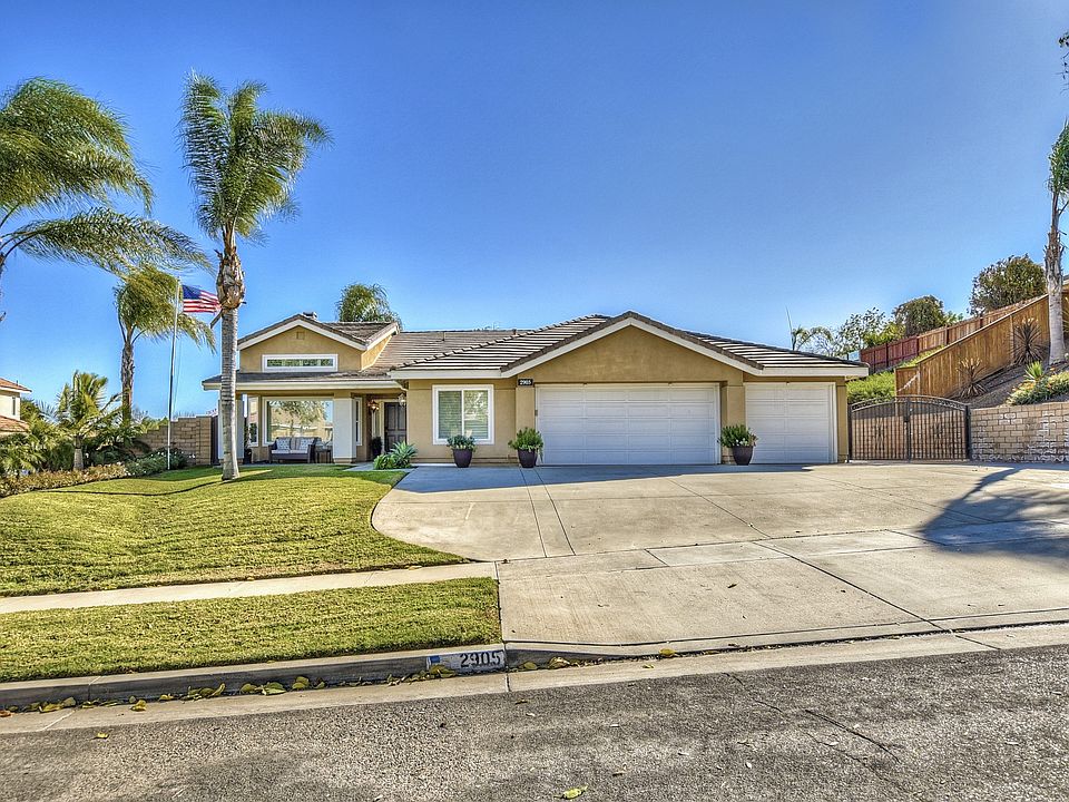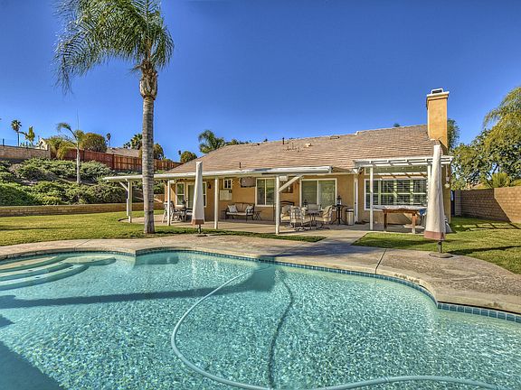 RARE FIND!!! Beautiful Single Story Pool Home with Gated RV Parking and Pull Through Garage!!! This property is situated on a Large Premium Lot in the heart of South Corona. Very sought after neighborhood , walking distance to Santiago High School. This floor plan offers 3 bedrooms and 2.5 bathrooms. There is an office plus a den that can be used as a 4th bedroom. Features include tile flooring throughout, remodeled kitchen with granite countertops and spacious island , beautiful backsplash, dark cabinetry with soft close and pull out drawers, stainless steel appliances and large sink. The master bedroom has a french door leading to the back covered patio. The backyard is a perfect for entertaining and very private with block walls and a enormous usable lot. The pool is tastefully done and perfect for those warm summer days. There is a 3 car garage with insulated doors and a pull through to the backyard as well as true gated RV parking. Upgraded electrical and lighting. Newer AC unit pool pump and filter. NO HOA NO MELLO ROOS LOW TAXES Highly desirable location. This home is a MUST SEE!!