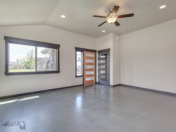 This well-maintained home has contemporary finishes with a welcoming feel. It has concrete floors, high efficiency radiant in-floor heating, custom tile in bathrooms, wood trim and doors, and sits on a corner lot backing to open space and across the street from a park. The windows give lots of natural light and great views of the Bridger Mountains, and the yard is fully landscaped. The open kitchen has custom concrete countertops, stainless steel appliances and a large pantry. It also has a large garage that is fully finished and heated. All this and it is conveniently located nears schools, shopping, and dinning.