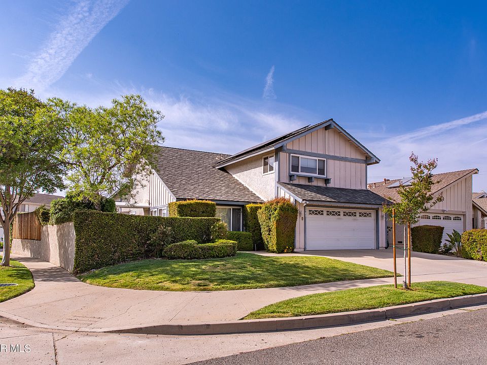 Very Nice Energy Efficient home in East Simi Valley! 4 Bedrooms and 2.5 baths with 2119 sq ft of living space on 5451 sq ft corner lot. Step down Livingroom with vaulted ceiling, formal dining room, cozy family room with fireplace and slider to rear yard. Upgraded kitchen features Quartz counters, custom tile backsplash, newer appliances, recessed lighting and a breakfast area. All 4 bedrooms are upstairs including a large master bedroom, master bath and walk in closet. Other features include Berber carpet and laminate flooring, dual-pane windows and slider and central heat and A/C. Very efficient seller paid solar system, results in a minimal monthly electric bill. Thousands were recently spent on the very private and relaxing low maintenance rear yard with newer hardscape, covered patio, artificial turf, custom built in BBQ, firepit and above ground spa. Close to schools, shopping and located across the street from a small park.
